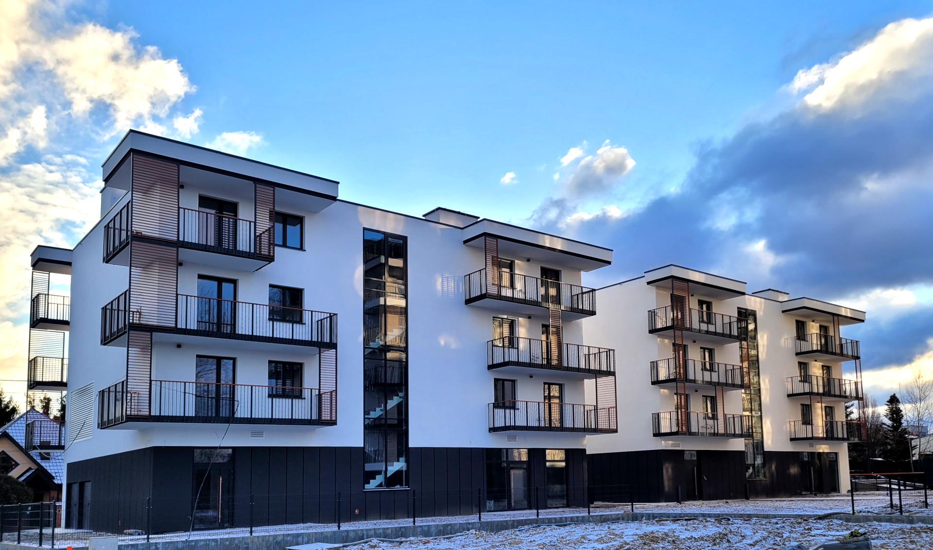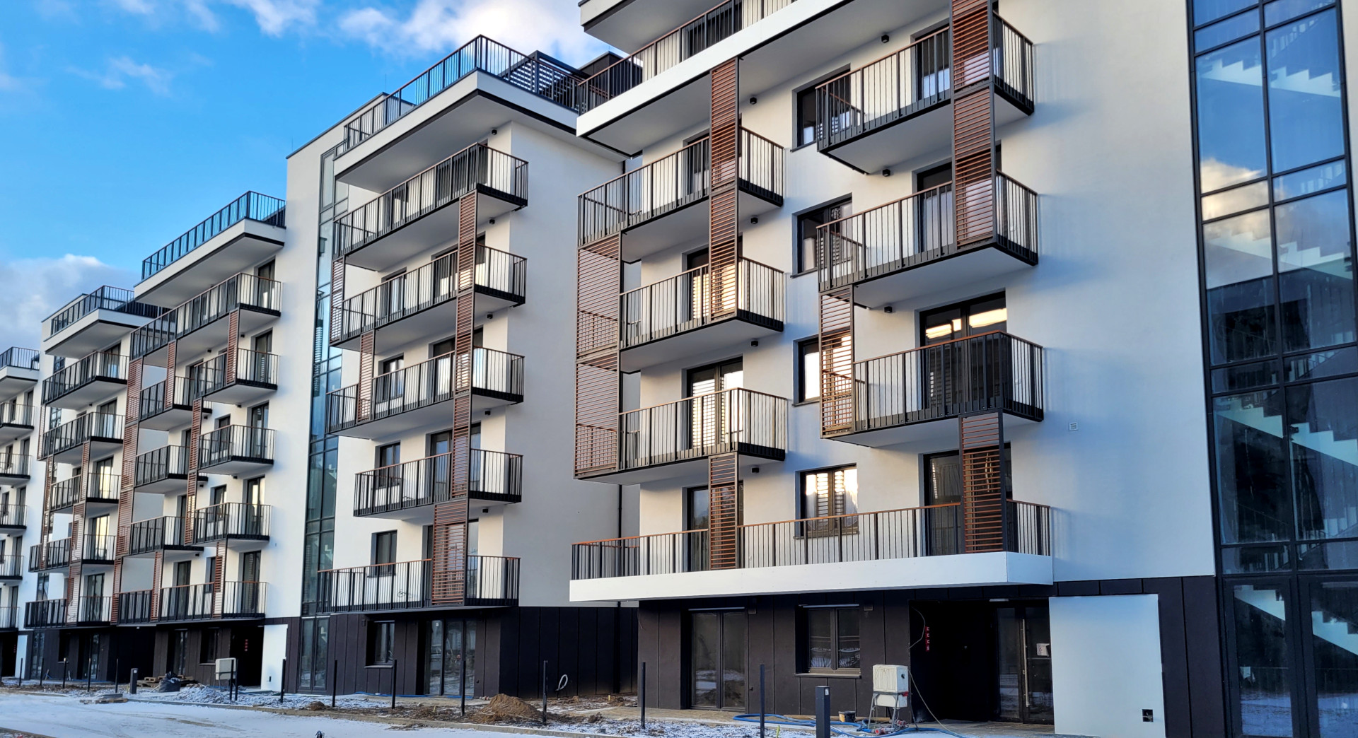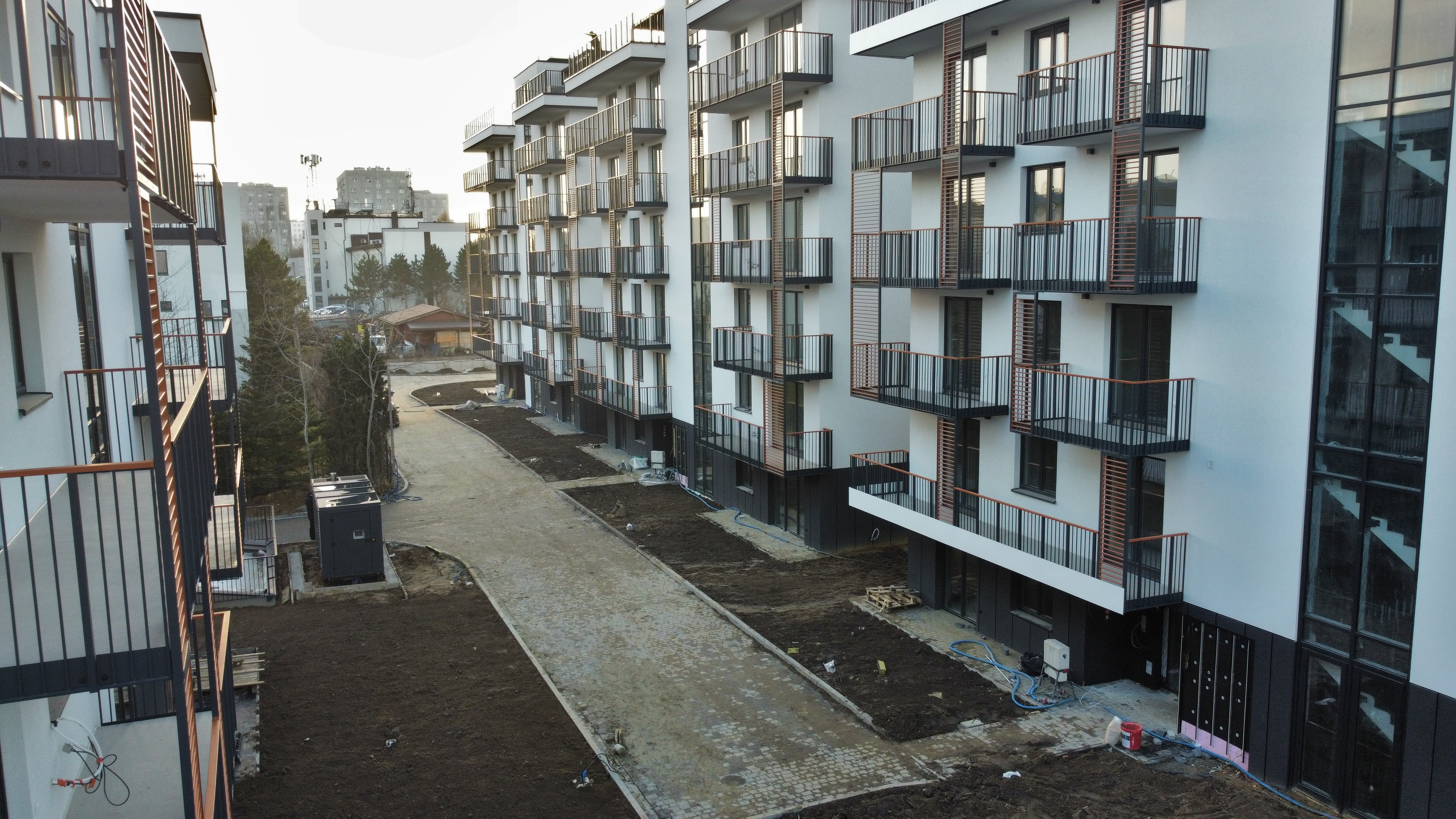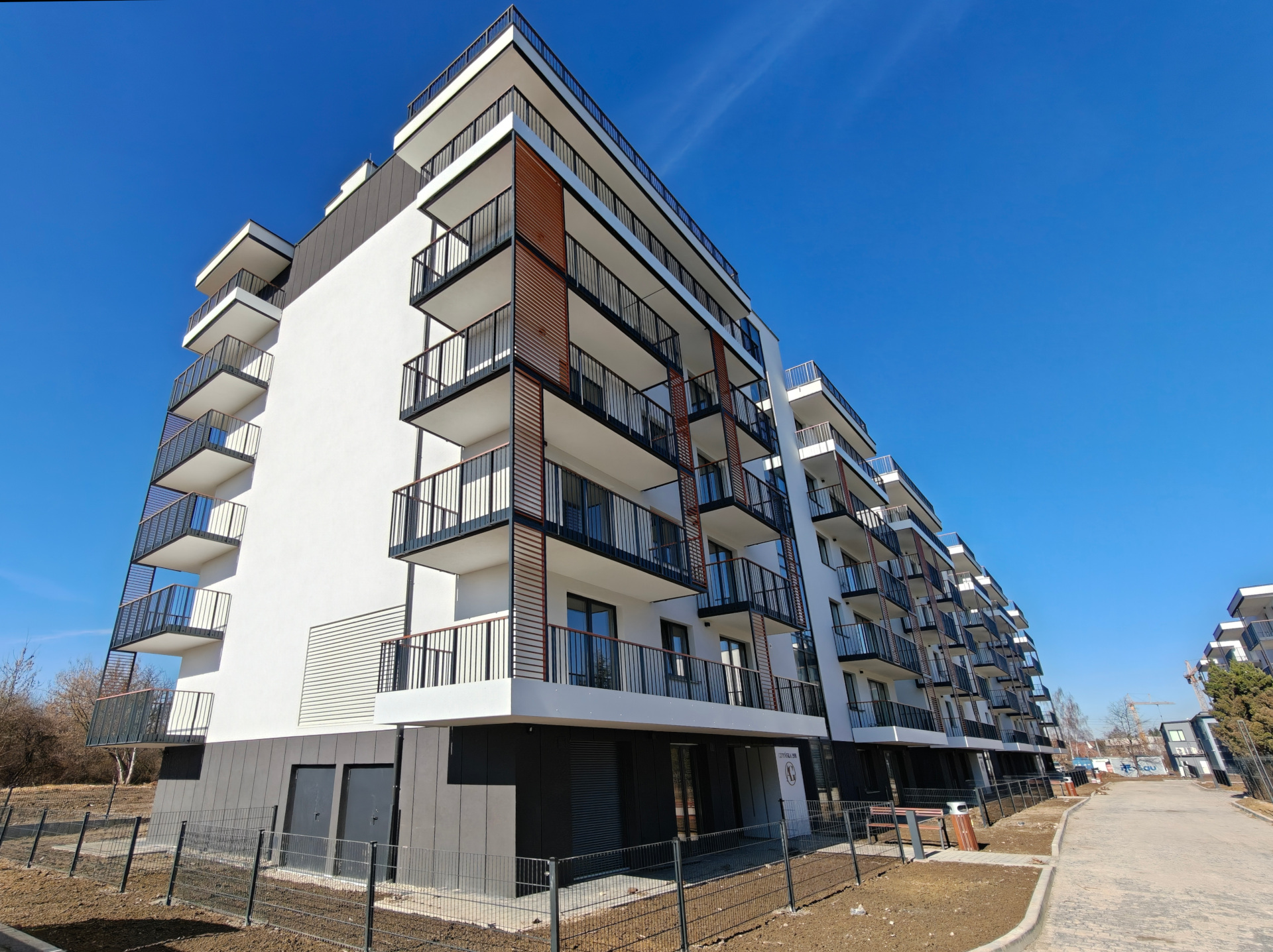 Mieszkania na parterze posiadają ogródki. Penthouse’y na najwyższych piętrach posiadają tarasy.