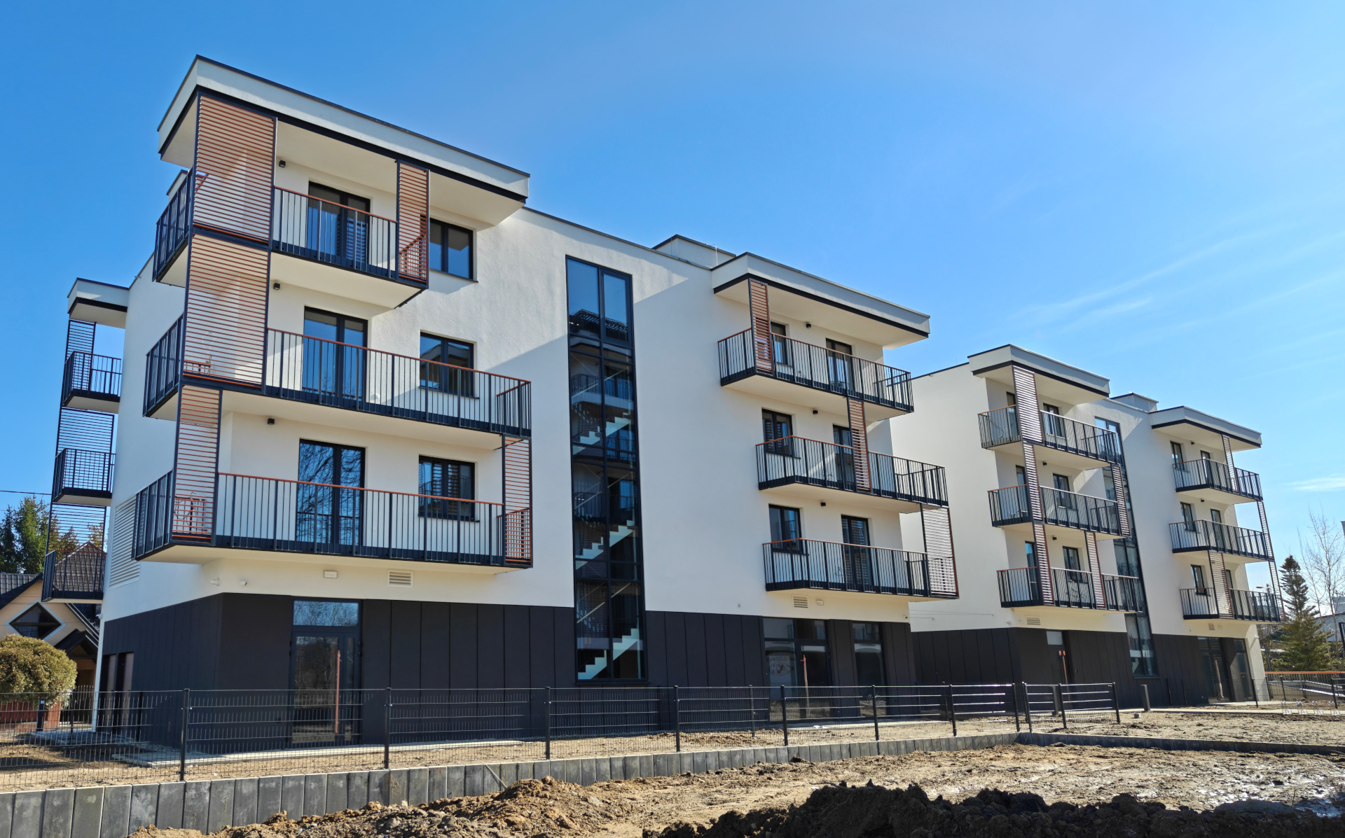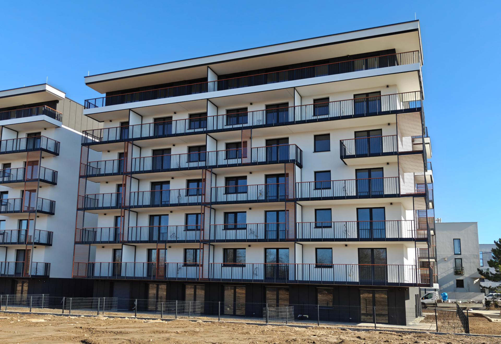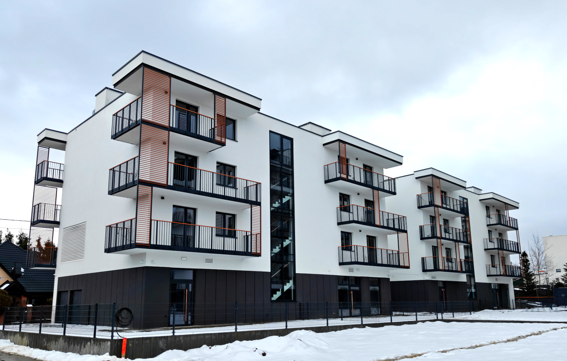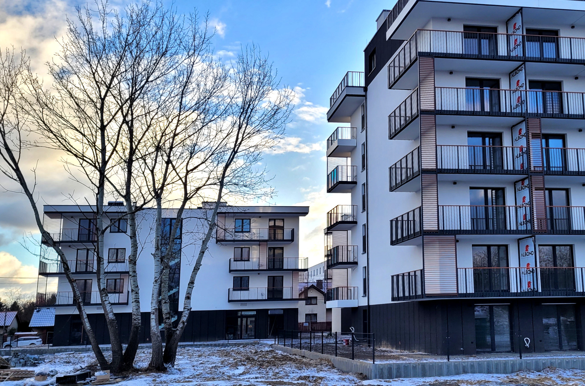 Mieszkania na parterze posiadają ogródki. Penthouse’y na najwyższych piętrach posiadają tarasy.