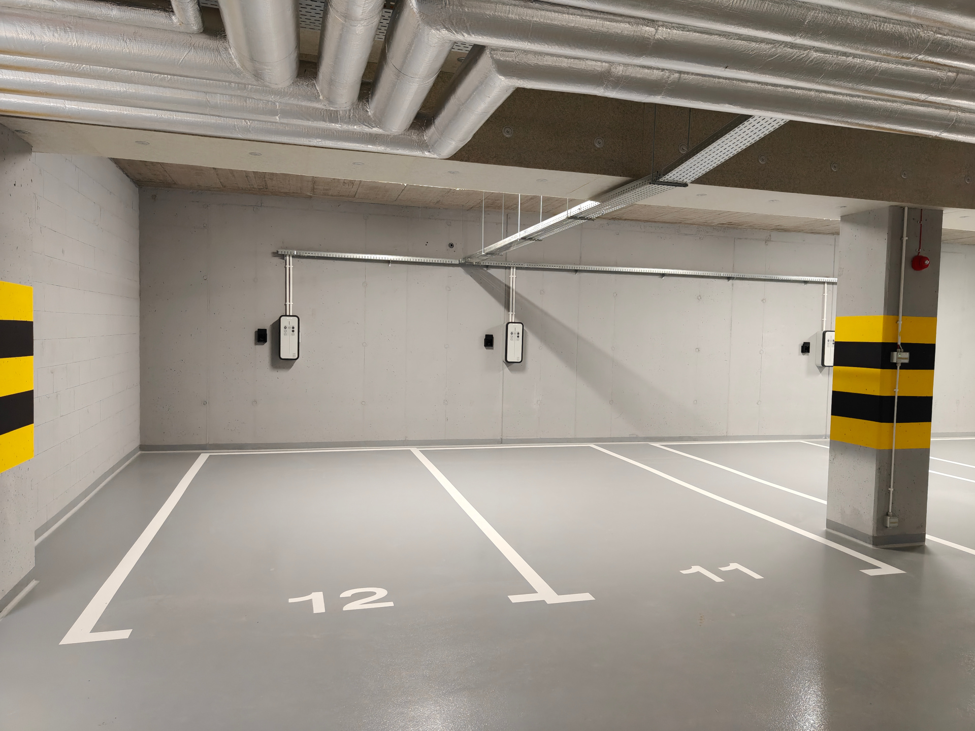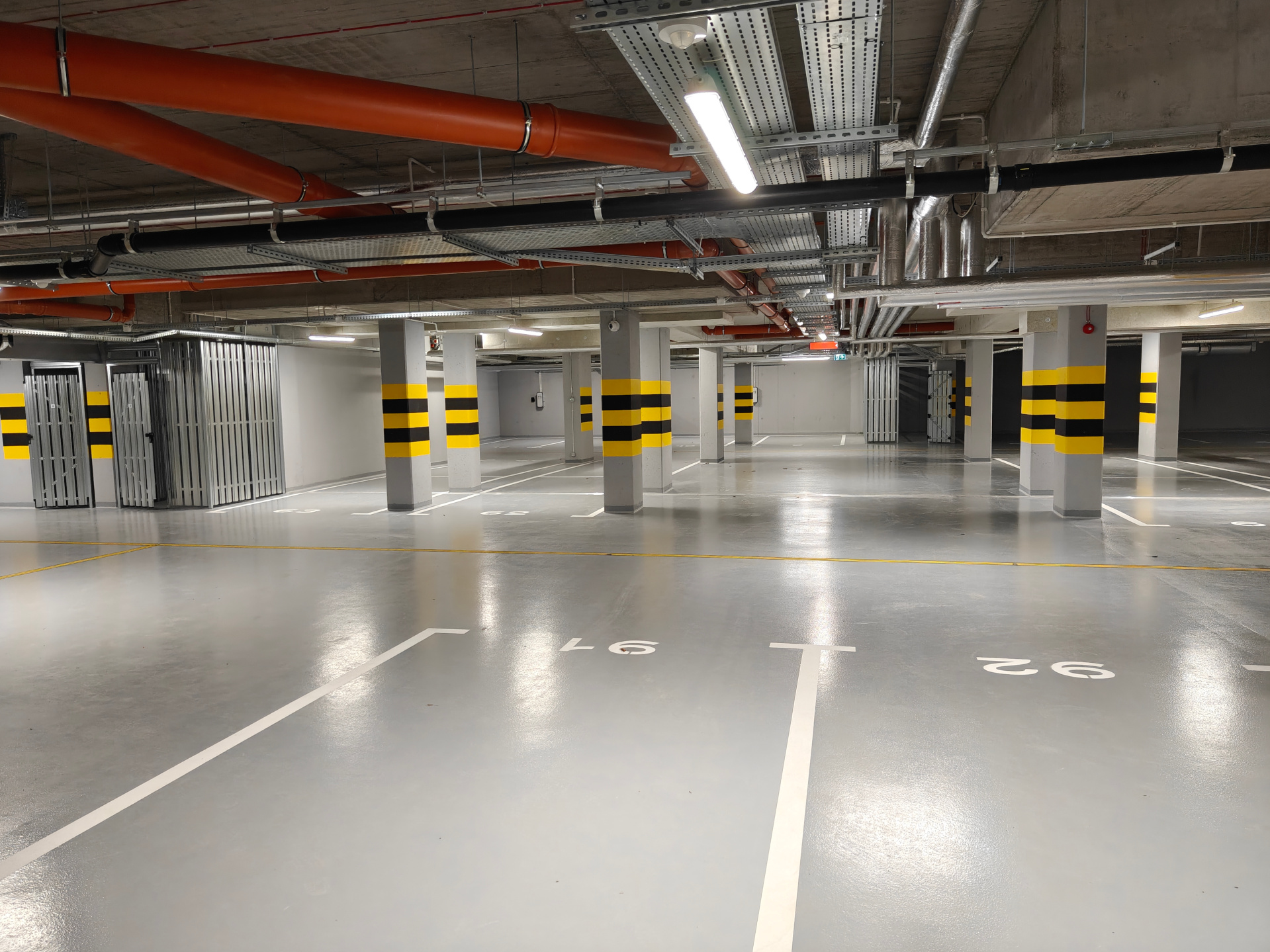 W kondygnacji podziemnej znajduje się duża hala garażowa, gdzie dla każdego z mieszkań przewidziano jedno lub dwa miejsca postojowe, a także boksy i komórki lokatorskie. Część miejsc postojowych została wyposażona w stacje ładowania aut elektrycznych.