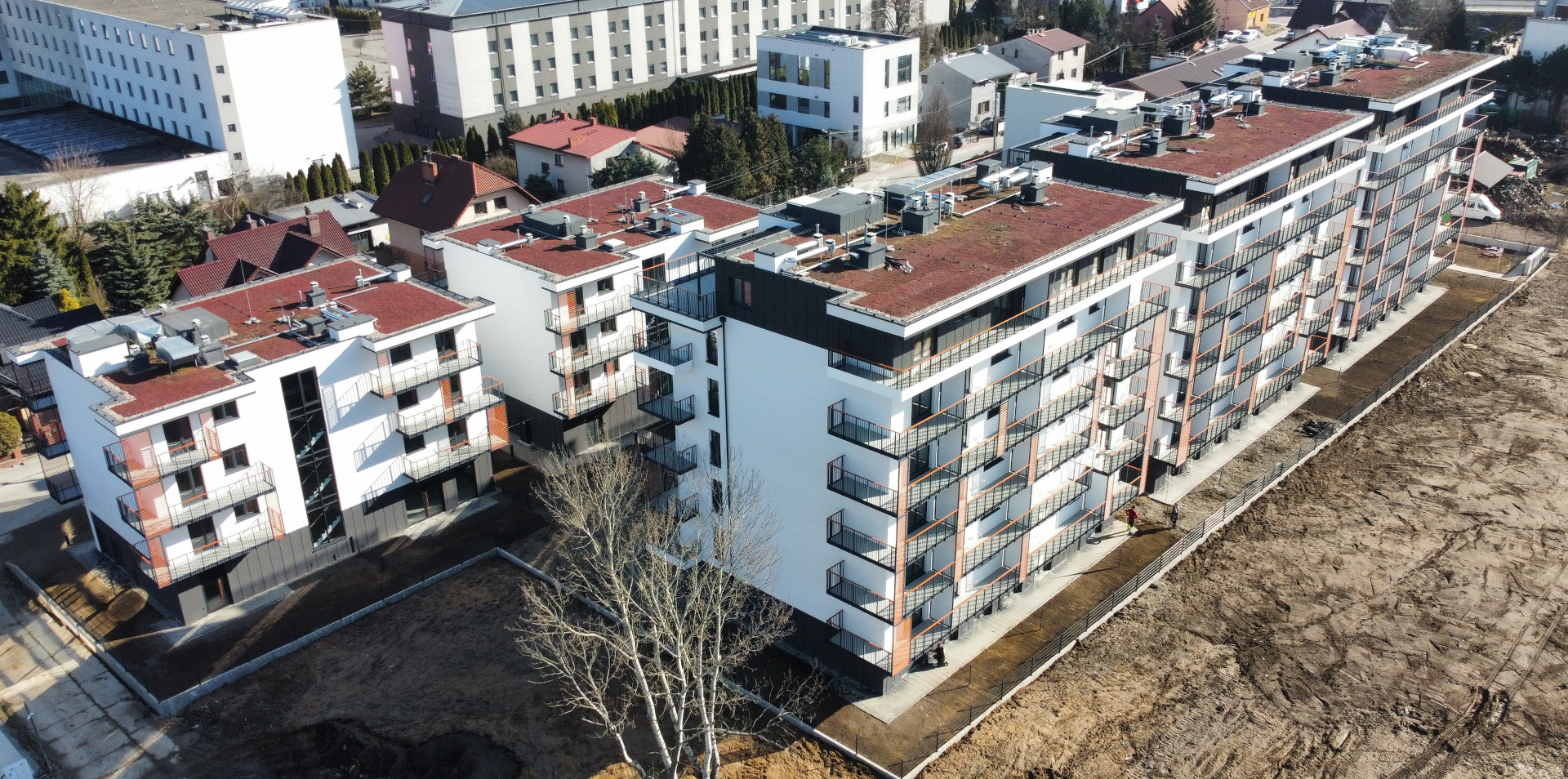 Wszystkie mieszkania na parterze posiadają ogródki, lokale na piętrach I-V przestronne balkony, a położone na najwyższych kondygnacjach penthous’y kilkudziesięciometrowe tarasy.