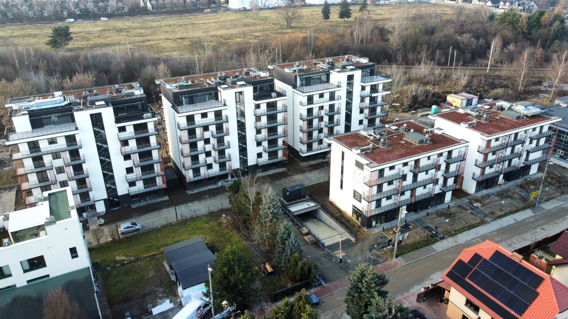 Na terenie kompleksu powstała ogólnodostępna rowerownia z możliwością ładowania rowerów i hulajnóg elektrycznych, wózkownie, przesyłkomat oraz plac zabaw.